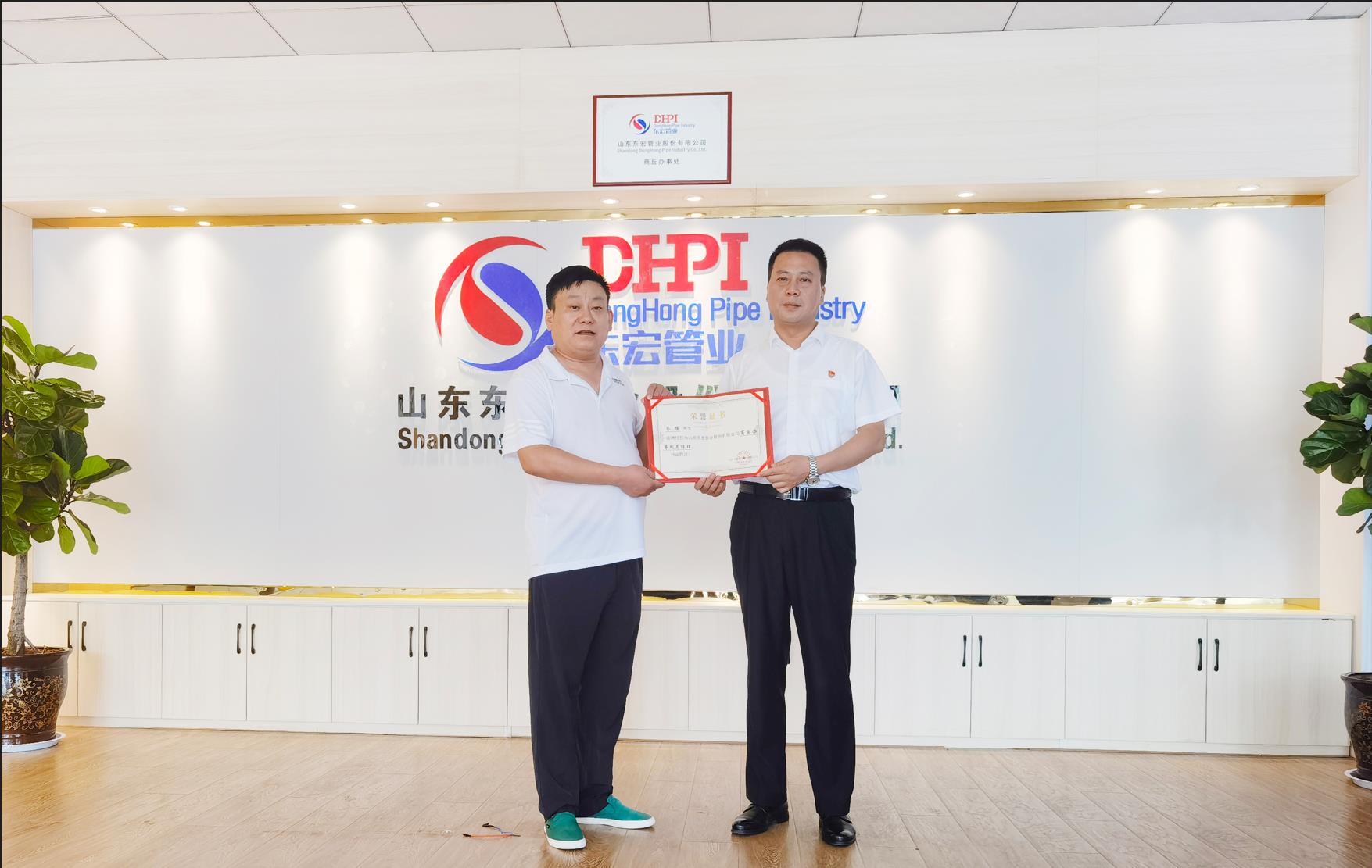 典礼第四项,副经理裁刘彬与齐总为商丘办事人处授牌。